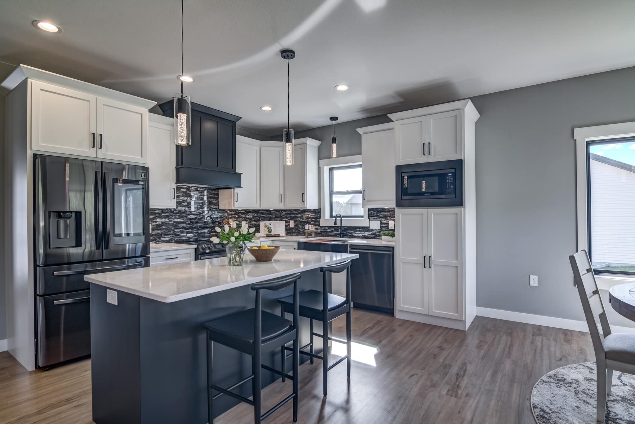 We based this custom Chippewa Falls home off of one of our standard plans. We installed many windows to let in plenty of natural light, and modern black, white, and gray colors create a modern farmhouse feel inside and out.