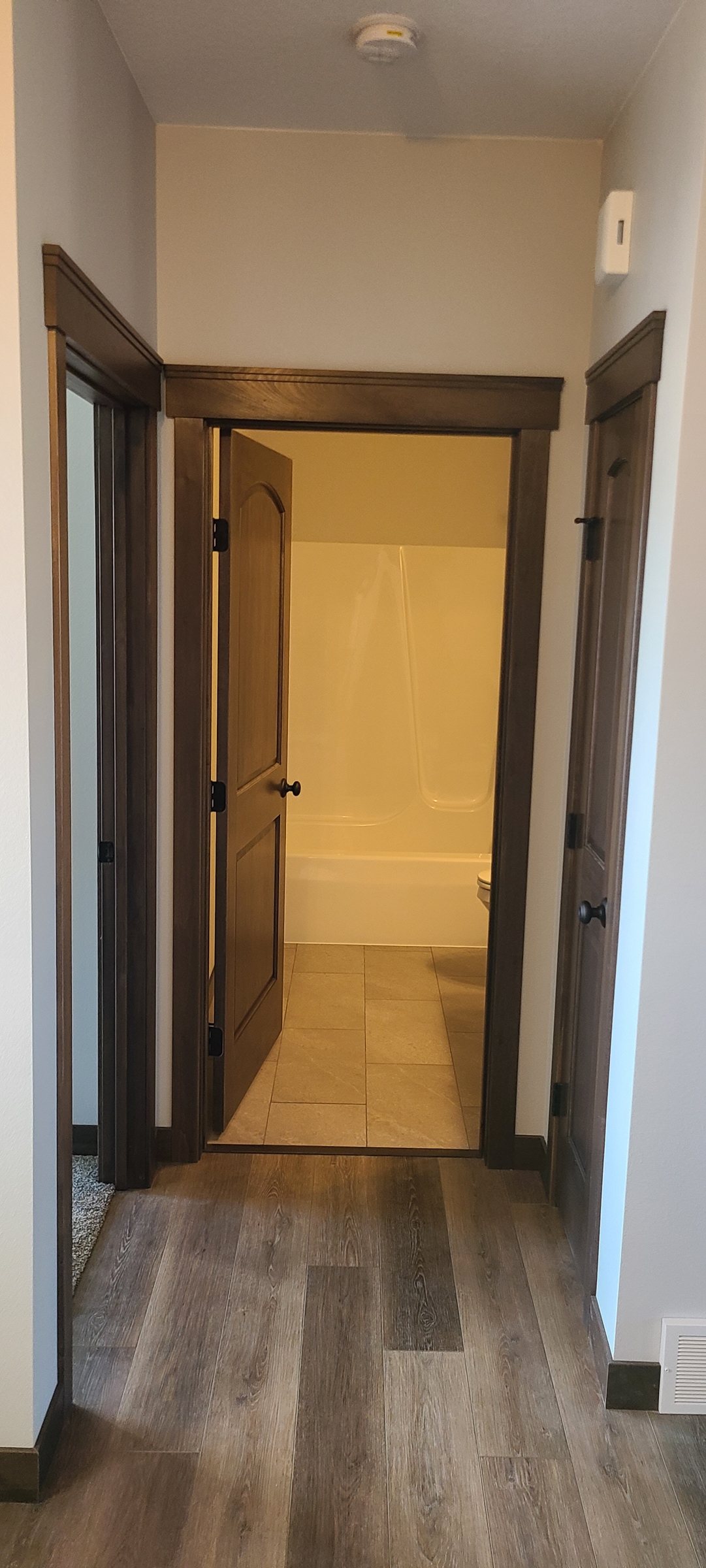 The three bedrooms feature closets with custom shelving and hang bars, and the master bedroom has a large walk-in closet. High quality carpeting in the bedrooms was a great choice, helping to dampen noise and provide a warm and welcome surface when the family gets out of bed in the morning.