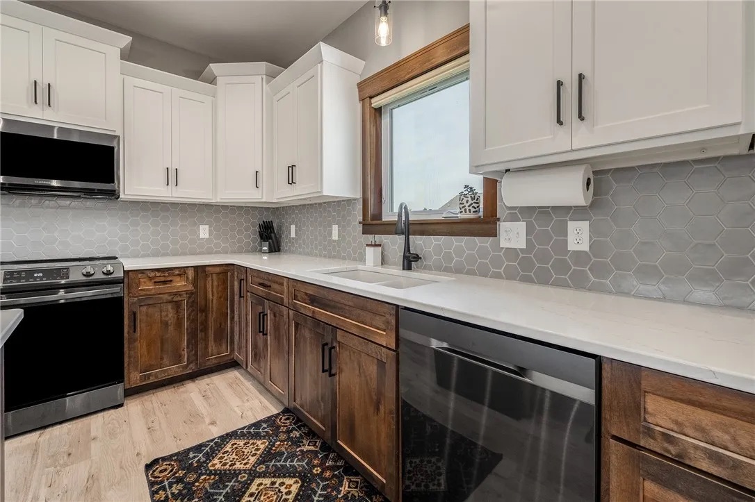 Once the exterior was completed, we installed an irrigation system to maintain a beautiful lawn in the summer. After this six month project, the client is thrilled to live in a Chippewa Falls neighborhood they love — and in a house that truly feels like home. We were thrilled to create a custom home that matched her style and needs, while minimizing stressful decision-making along the way.